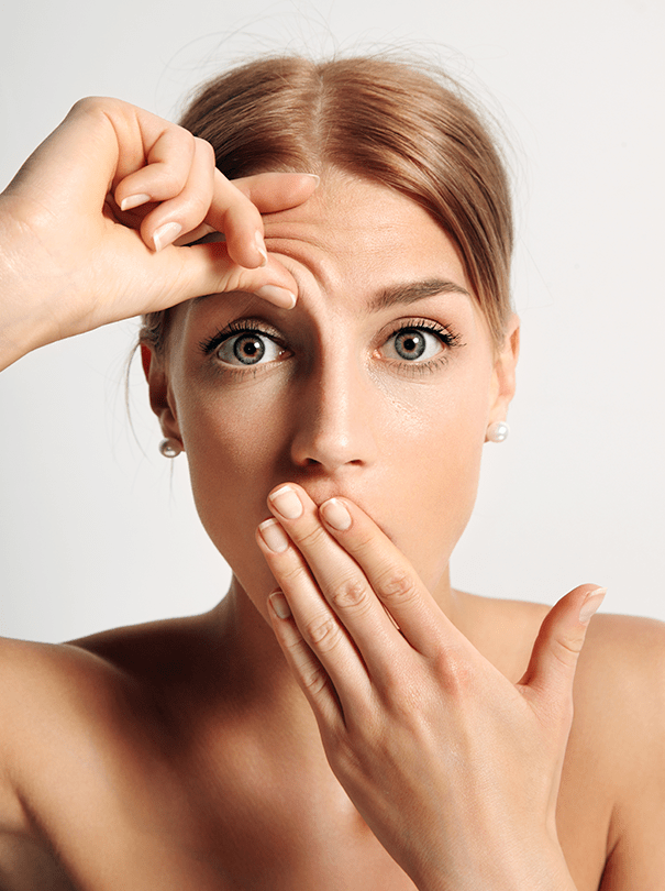 - Alın ve kaş arasındaki kırışıklıklar